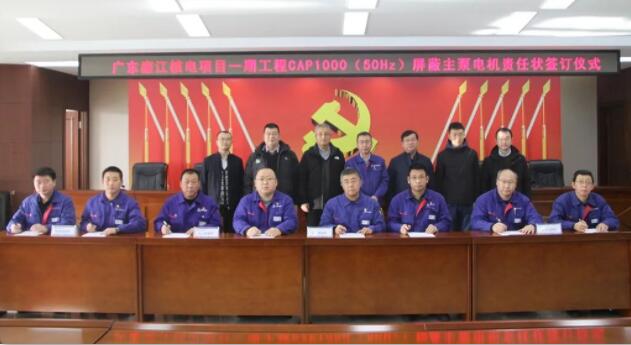 為樹(shù)牢用戶至上服務(wù)理念,全力以赴確保廣東廉江核電項(xiàng)目一期工程CAP1000(50Hz)屏蔽主泵電機(jī)按期高質(zhì)交付。12月13日,哈電動(dòng)裝舉行廉江核電項(xiàng)目責(zé)任狀簽訂儀式。會(huì)上,公司總經(jīng)理李夢(mèng)啟與分管領(lǐng)導(dǎo)、分管領(lǐng)導(dǎo)與各直屬單位負(fù)責(zé)人分別簽訂責(zé)任狀。國(guó)核湛江核電公司二級(jí)咨詢員劉寶珠及上海核工院副總經(jīng)理張守龍參加簽訂儀式。