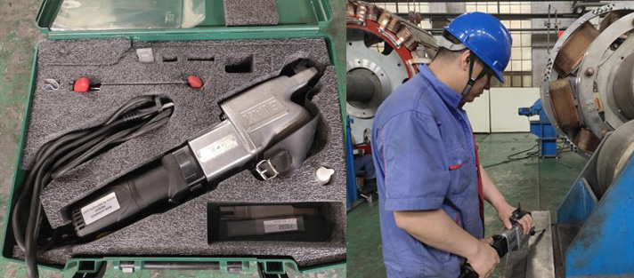 此外,同步電機的研鍵也采用了先進設備——電動刮研機,來代替以往的砂輪打磨。1005-308進行研鍵時,新區尚未引進新工具,10對鍵研鍵一序共耗時20天。而1005-309研鍵時,電機制造部采用了新引進的電動刮研機,12對鍵研鍵一序共耗時5天。新設備的引進既方便了操作者,又極大地提高了生產效率。